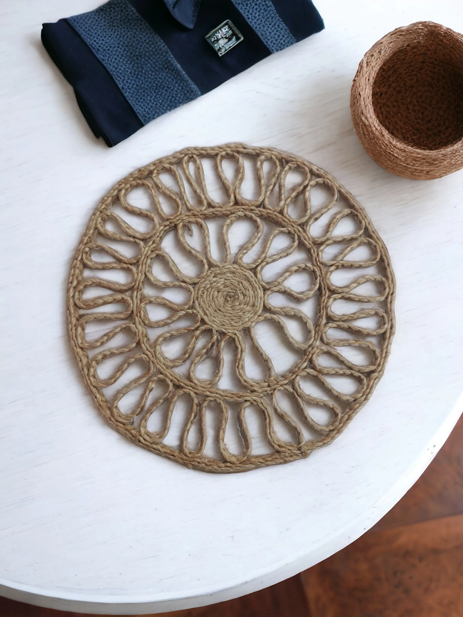 Boho Handmade Jute Placemats | Handcrafted jute placemats | 30 cm Dia | Set of 4